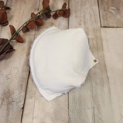 This towelling overlay scarf shape features a standard elasticated back design with a soft velour towelling overlay on top. The edges are neatly finished with lace for a delicate, elegant touch.