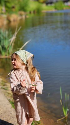 A matching 32 × 32 cm hanky is also available, designed in the same print for a softly coordinated set.