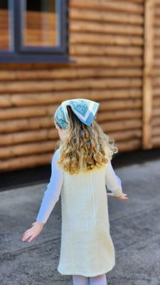 A matching 32 × 32 cm hanky is also available, designed in the same print for a softly coordinated set.
