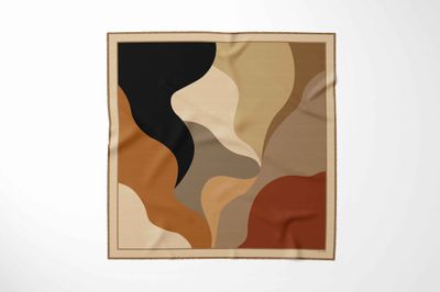 An abstract landscape of flowing, organic shapes that drift seamlessly into one another. The composition is soft, sculptural, and grounded, with each curved form creating a natural sense of movement. Minimal yet expressive, the design balances modern artistry with quiet sophistication, framed by a simple border that keeps the piece refined and wearable.